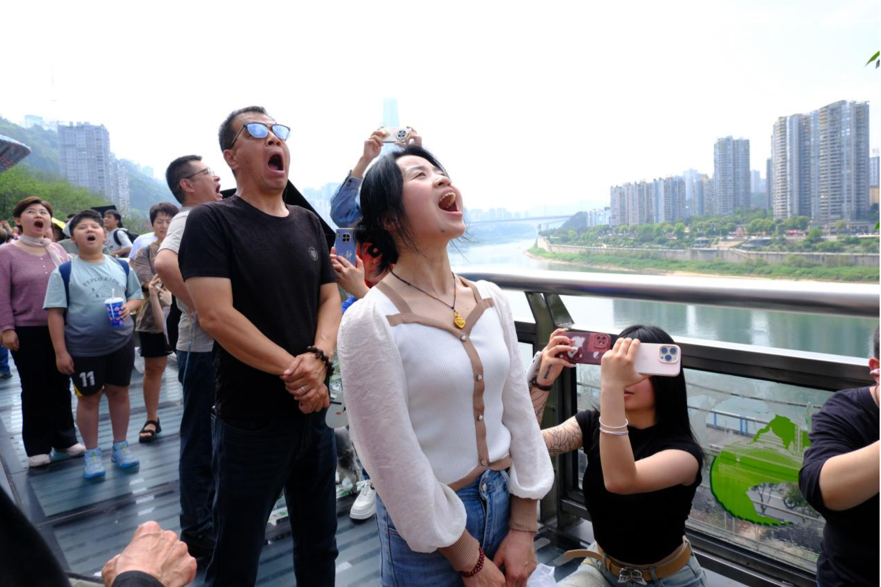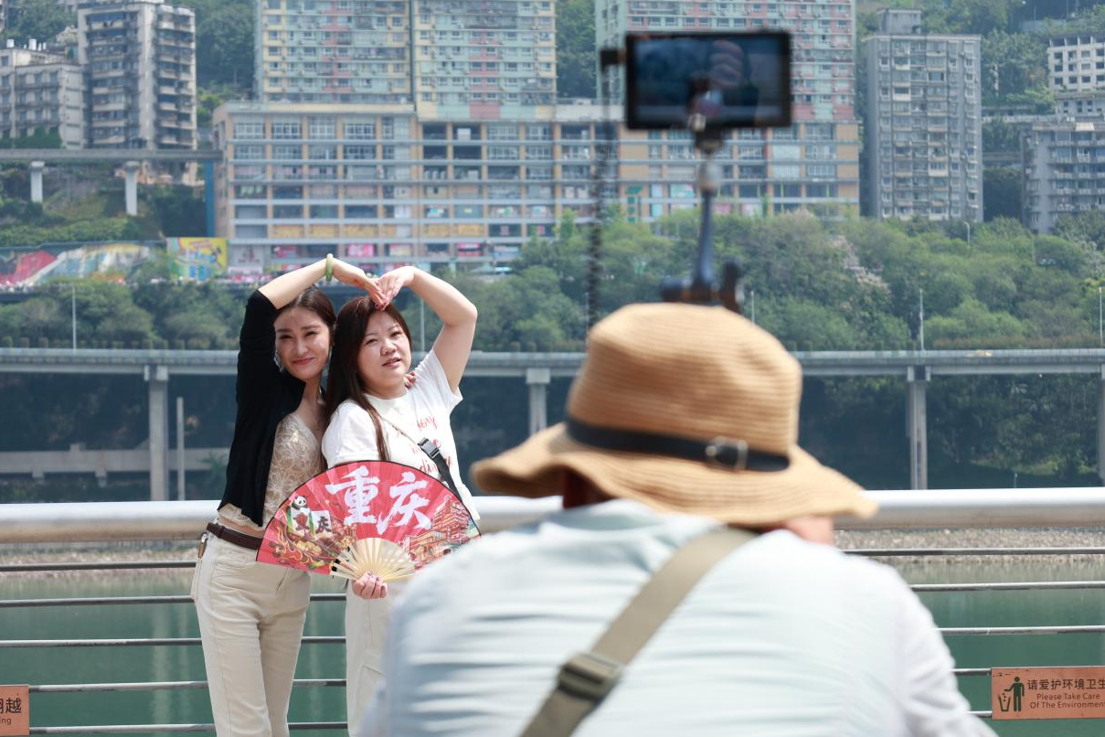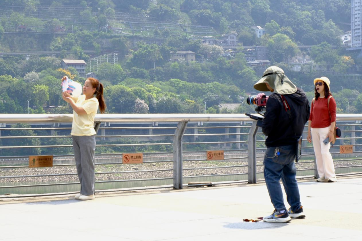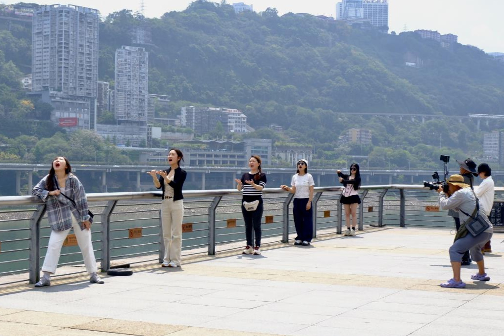 沉庆轻轨的魔力也吸引了外国旅客前来打卡。旅客们的奇思妙想,
